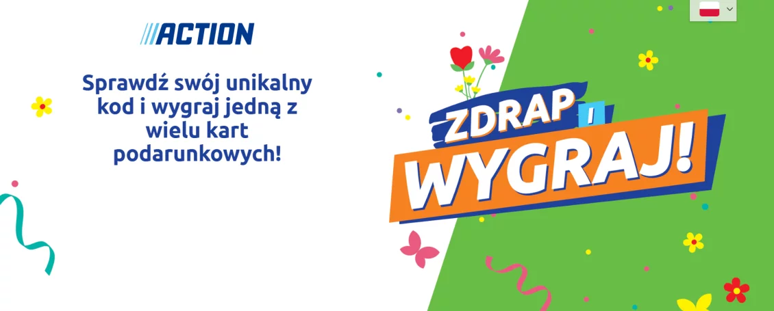 dokonaj prawidłowego zgłoszenia na stronie https://action.com/zdrapki i sprawdź, czy wygrałeś jedną z kart podarunkowych.