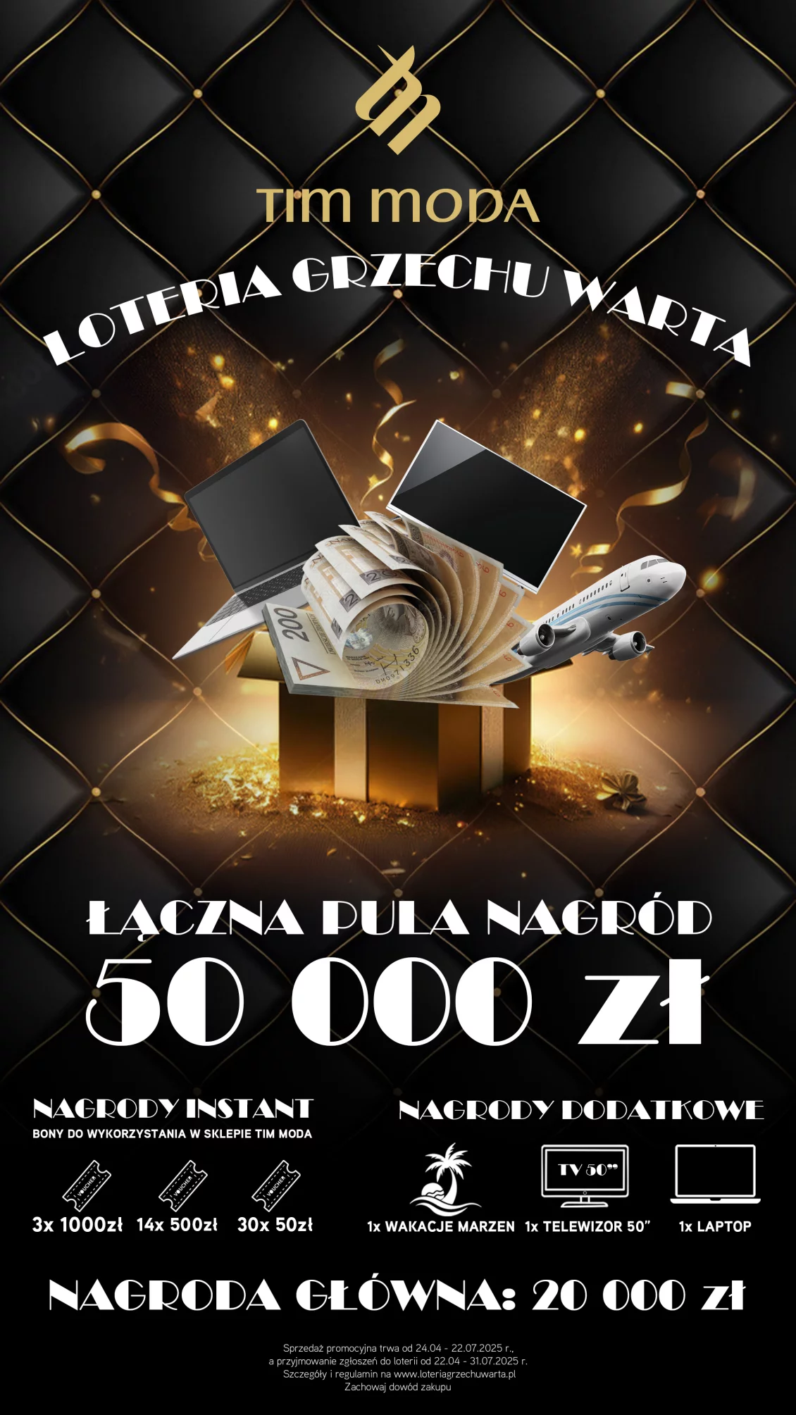 - 3x bon na zakupy w sklepie internetowym TIM MODA o wartości 1 000 zł,