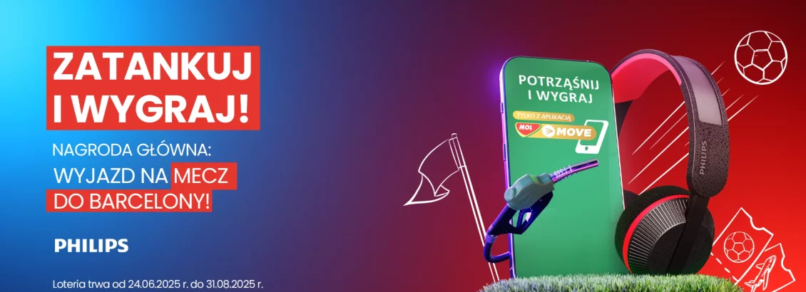 Mechanizm loterii Zaloguj się na swoje konto lojalnościowe programu MOL Move i wyraź zgodę na udział w loterii. Między 04.03.2026 r. a 31.05.2026 r. dokonaj jednorazowego zakupu, przy użyciu karty MOL Move, nie mniej niż 1 litra dowolnego paliwa/paliw dostępnych na stacji MOL/LOTOS lub towarów i...