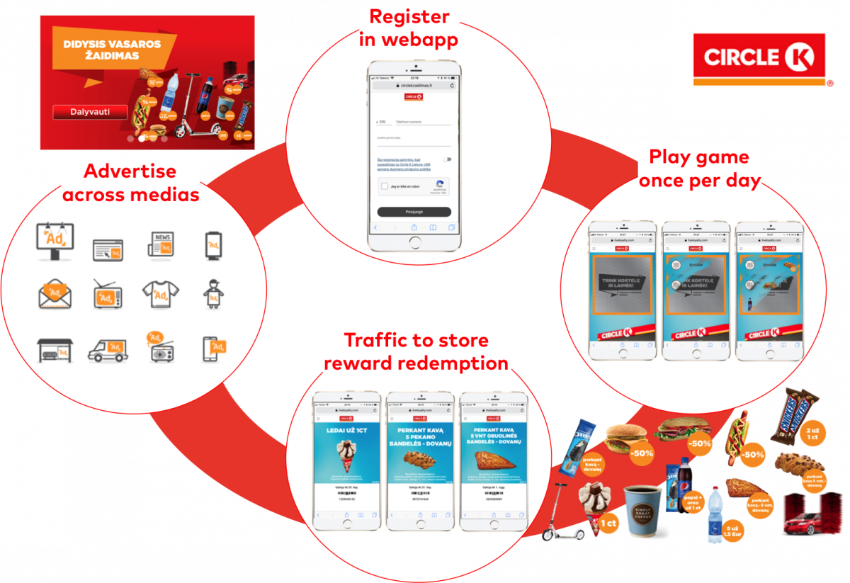 Cykl udziału w loterii jest opisany następującym poniższym schematem. Konsument może grać za darmo i wygrywać nagrody wielokrotnie. Jednak odbiór wygranej zawsze odbywa się w punkcie sprzedaży (on-line, in-store).